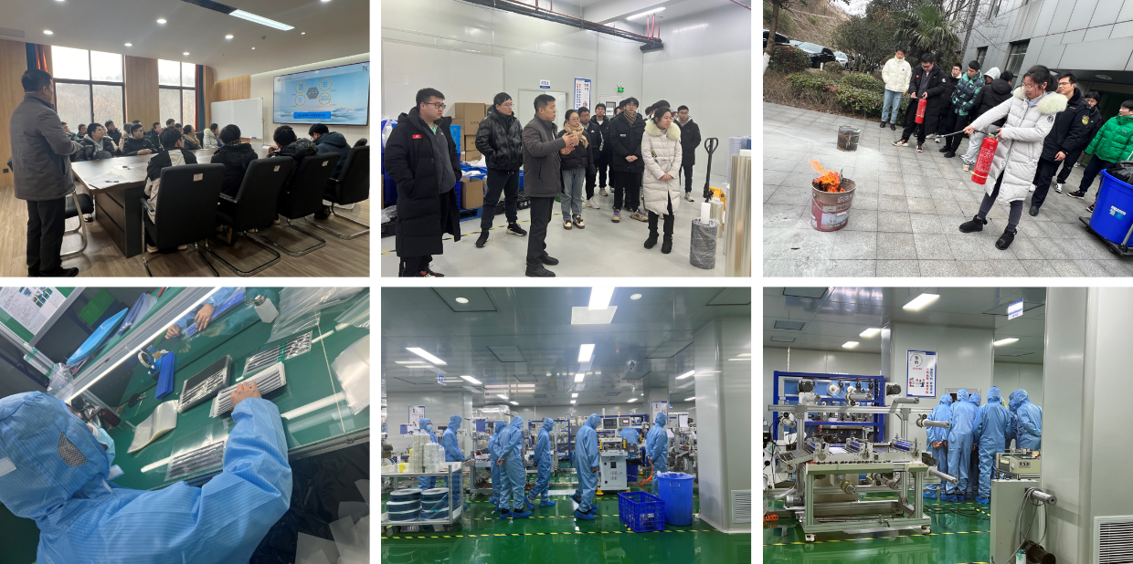 在宁嘉新材实习期间,学生们参观学习了公司的拳头产品功能性电子胶带的生产制造流程,并通过集中培训学习了电子胶带的分类、功能以及制造技术要求。为了让学生进一步了解生产一线的具体工艺流程,宁嘉新材项目经理安排学生们分组进入超净车间内部,参与到原材料的生产操作、成品制造以及终端质检的每一个环节,全面掌握电子胶带的生产操作技能。此外,公司技术人员还集中组织学生开展了公司消防演练,提高学生的车间安全意识。