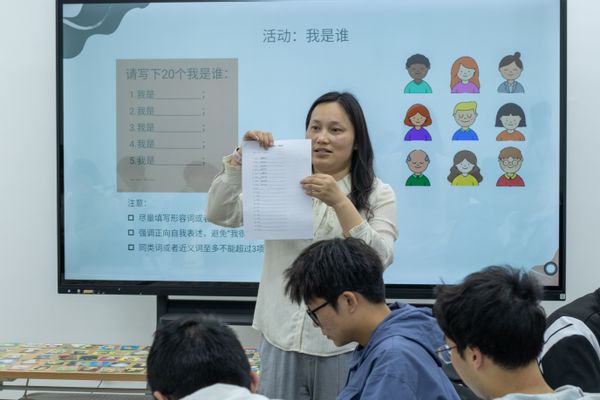 课程伊始,赵老师以新能源专业的就业前景为例,通过全方位、多角度、宽维度的分析与对比,强调首先应该建立专业自信,坚信“天生我材必有用”!随后通过开展“我是谁”“TA是谁”的自评和互评环节,使得同学们在匆匆前行时“驻足思考”,刷新自己的自我认知。紧接着,赵老师带领同学们沉浸式体验OH卡游戏,包括自由抽取卡牌、以小组为单位解读分享卡牌含义等方式,帮助同学们更好地认识自己、理解他人,提高对自我的“元”认知能力,释放压力、增强自信,激发想象力和创造力。