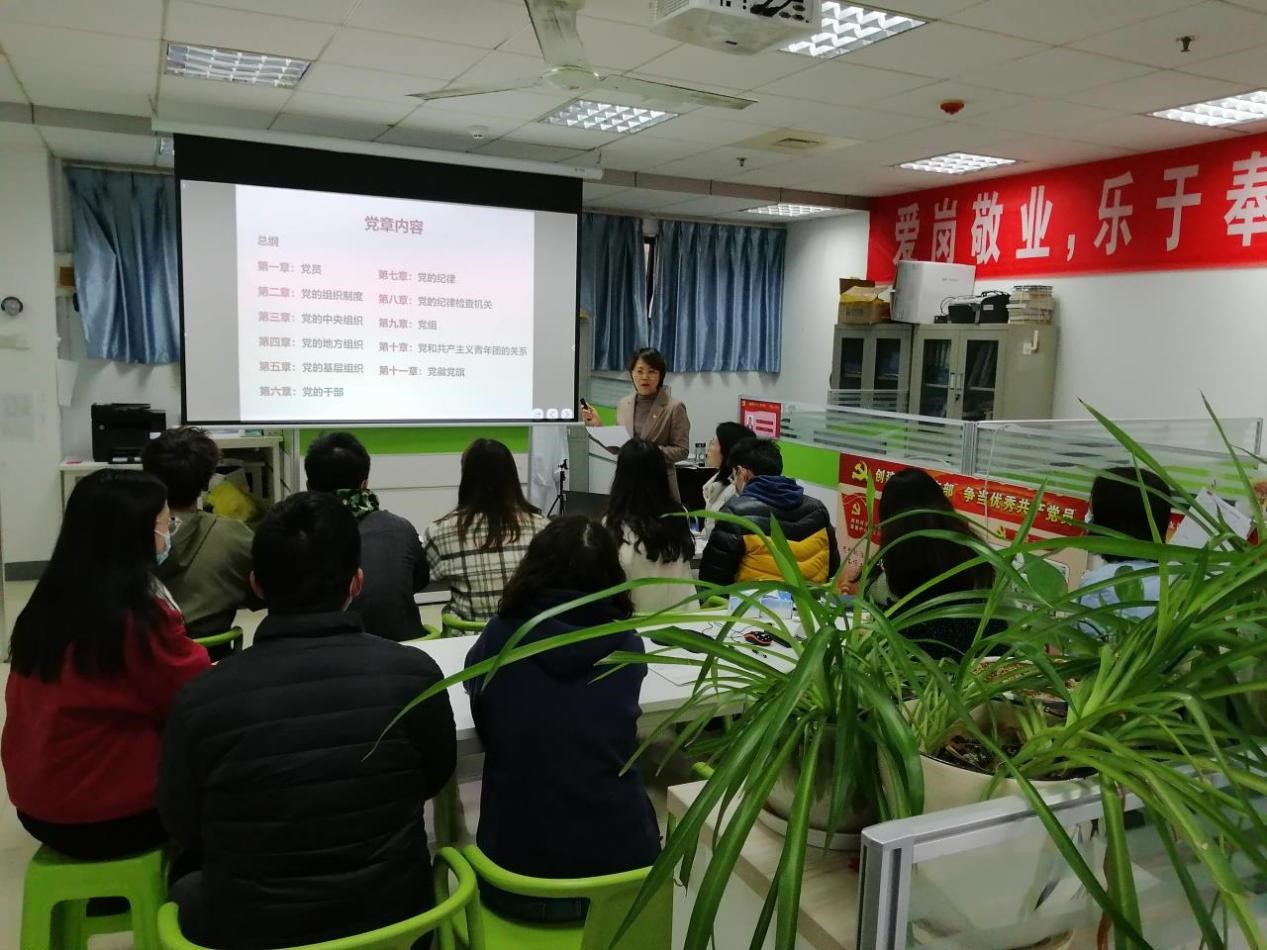 赵允玉书记系统地梳理了我党建党以来党章制定的历史沿革以及简要内容,强调党章集中体现了党的性质和宗旨、党的理论和路线方针政策、党的重要主张,规定了党的重要制度和体制机制,是党的根本大法,是立党、治党、管党的总章程,也是全党必须遵循的总规矩。赵书记带领全体党员同志原原本本学习了二十大党章修正稿的对照全文,重点讲解了党章修改的五十处文字部分中首次加入的“充分发挥人才作为第一资源的作用”的表述和要求。党的二十大报告中第五章“实施科教兴国战略,强化现代化建设人才支撑”,明确提出“教育、科技、人才是全面建设社会主义现代化国家的基础性、战略性支撑”,明确强调“必须坚持科技是第一生产力、人才是第一资源、创新是第一动力”。这些新表述、新要求,为我们新时代新征程做好人才培养工作提供了科学指南和根本遵循。赵允玉书记提醒在座党员同志,是担负立德树人职责的高校教师以及接受国家培养的研究生人才,都是国家未来科技发展国家强大的重要力量,一定要清醒地认识到自身的重要责任和使命担当,明确政治站位,提高思想水平和业务技能。学习党章、遵守党章、贯彻党章、维护党章,关系到增强党的创造力、凝聚力和战斗力,更关系到巩固党的执政地位。作为共产党员,要时刻不忘党章的要求,发扬斗争精神,增强斗争本领,做一名合格的共产党员。
