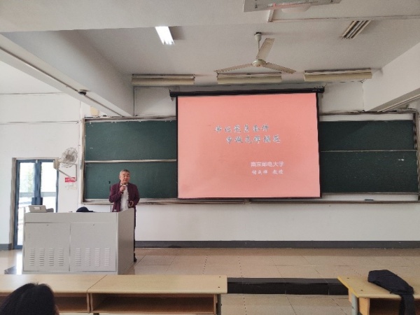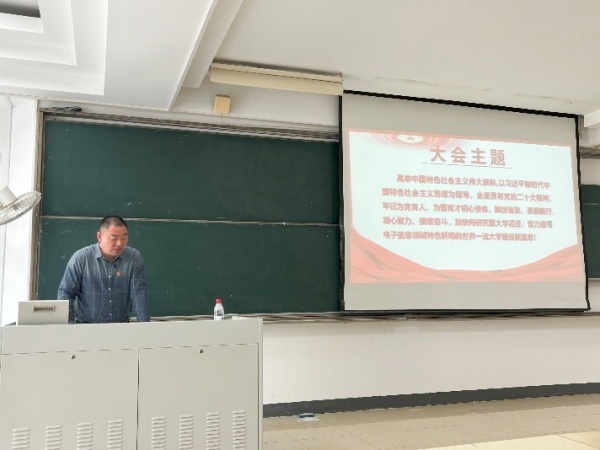 高志华书记讲授学习宣传贯彻校第四次党代会精神专题党课,他向大家传达了学校第四次党代会精神并告知学院未来发展动向,希望大家能够发扬“信达天下,自强不息”的南邮精神,心系“国家事”,肩扛“国家责”,把个人命运和国家民族命运紧密结合在一起。