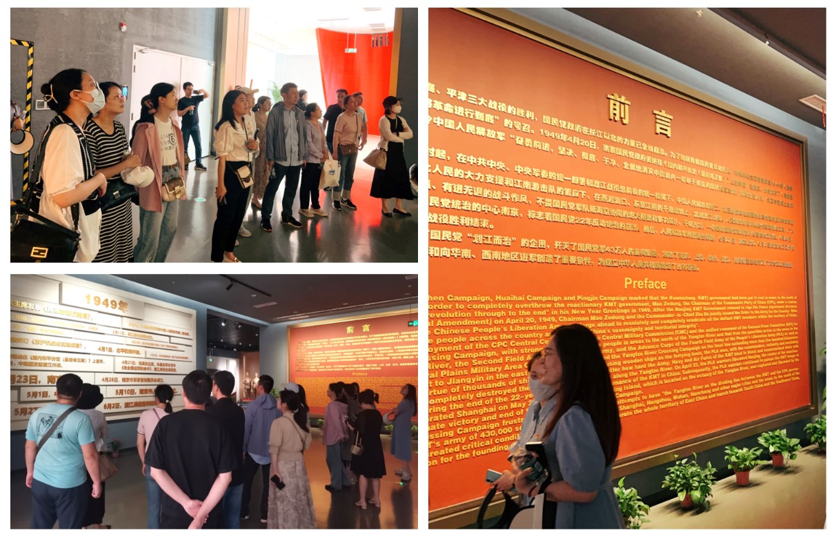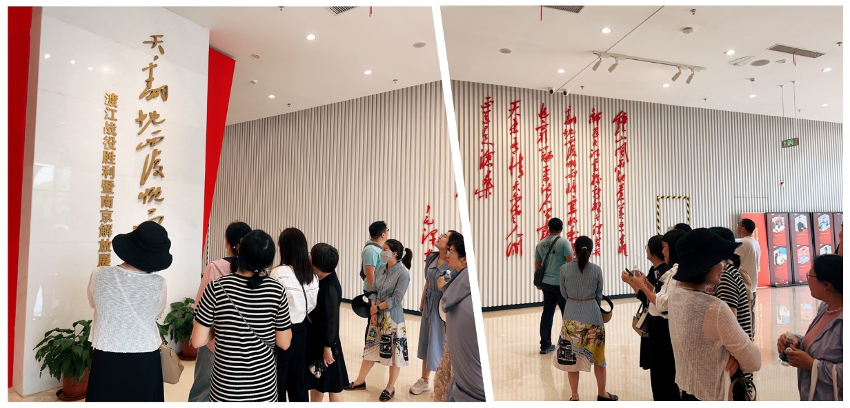 “钟山风雨起苍黄,百万雄师过大江。虎踞龙盘今胜昔,天翻地覆慨而慷。宜将剩勇追穷寇,不可沽名学霸王。天若有情天亦老,人间正道是沧桑。”参观前,教师党员们共同回忆了毛主席的《七律•人民解放军占领南京》,一起重温老一辈革命家深厚的爱国情怀和顽强的奋斗精神。
