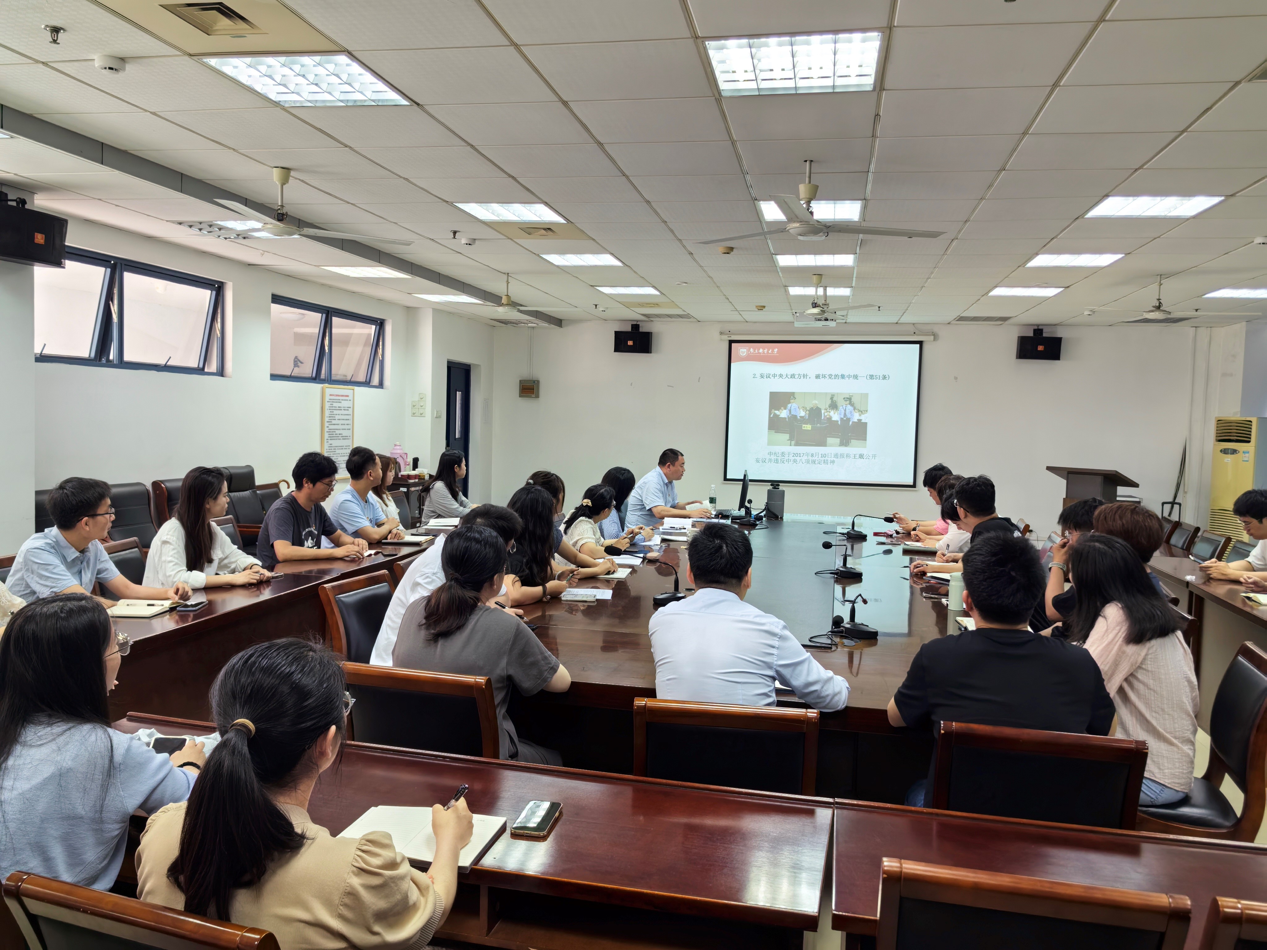 高志华书记首先带领大家重温了《中国共产党纪律处分条例》中政治纪律、组织纪律、廉洁纪律、群众纪律、工作纪律和生活纪律的核心要义,结合当前社会上各类违纪违法典型案例,深入剖析了违反“六项纪律”的危害性和严重后果。他对全体党员干部提出三点希望,第一,思想站位要进一步提高,必须讲政治、守规矩,牢固树立“四个意识”,始终坚定“四个自信”;第二,纪律观念要进一步强化,必须强化纪律观念,时刻紧绷纪律规矩这根弦,做到心有所畏、言有所戒、行有所止;第三,责任意识要更加自觉,努力做到知责于心、担责于身、履责于行。