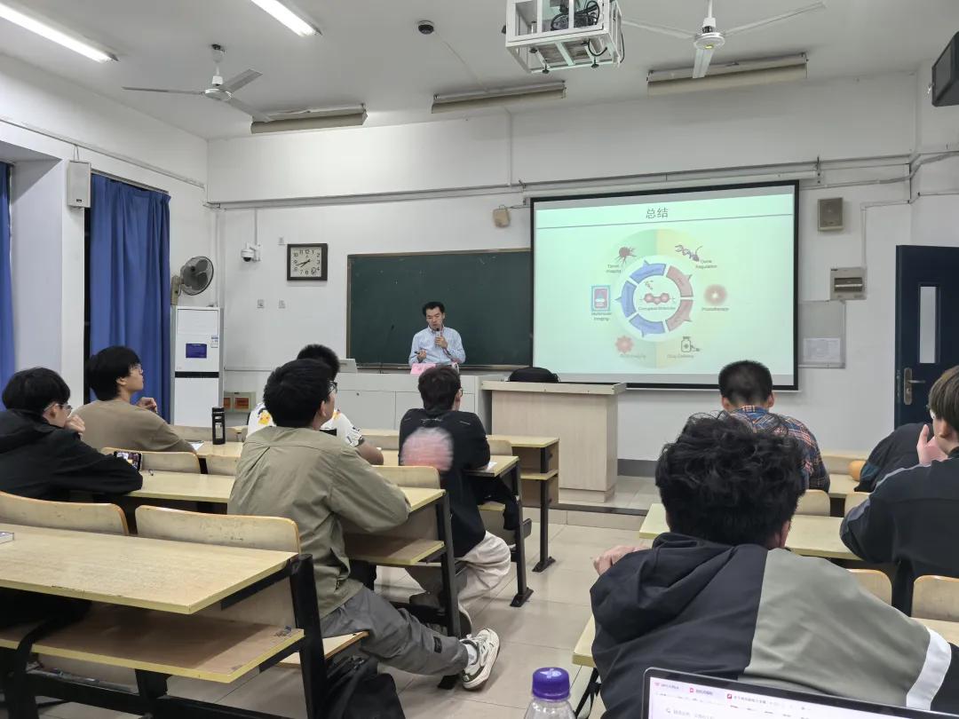 2024年10月18日晚上,教3-103,学院邀请谢晨教授为“菁英计划”学员开展题为《有机共轭分子在生物诊疗中的应用》的讲座。讲座由22级本科生辅导员侍茜茜老师主持,全体2023级和2024级“菁英计划”学员参加学习。