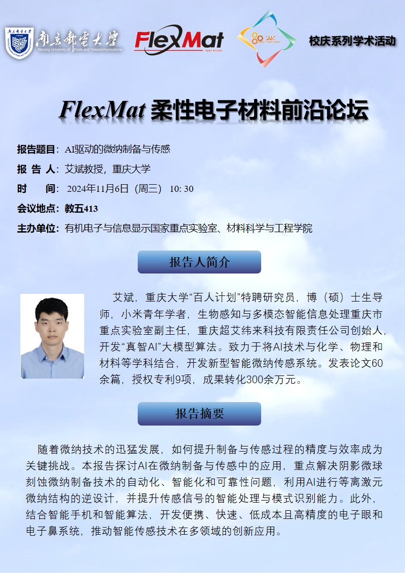 FlexMat柔性电子材料前沿论坛:重庆大学 艾斌教授