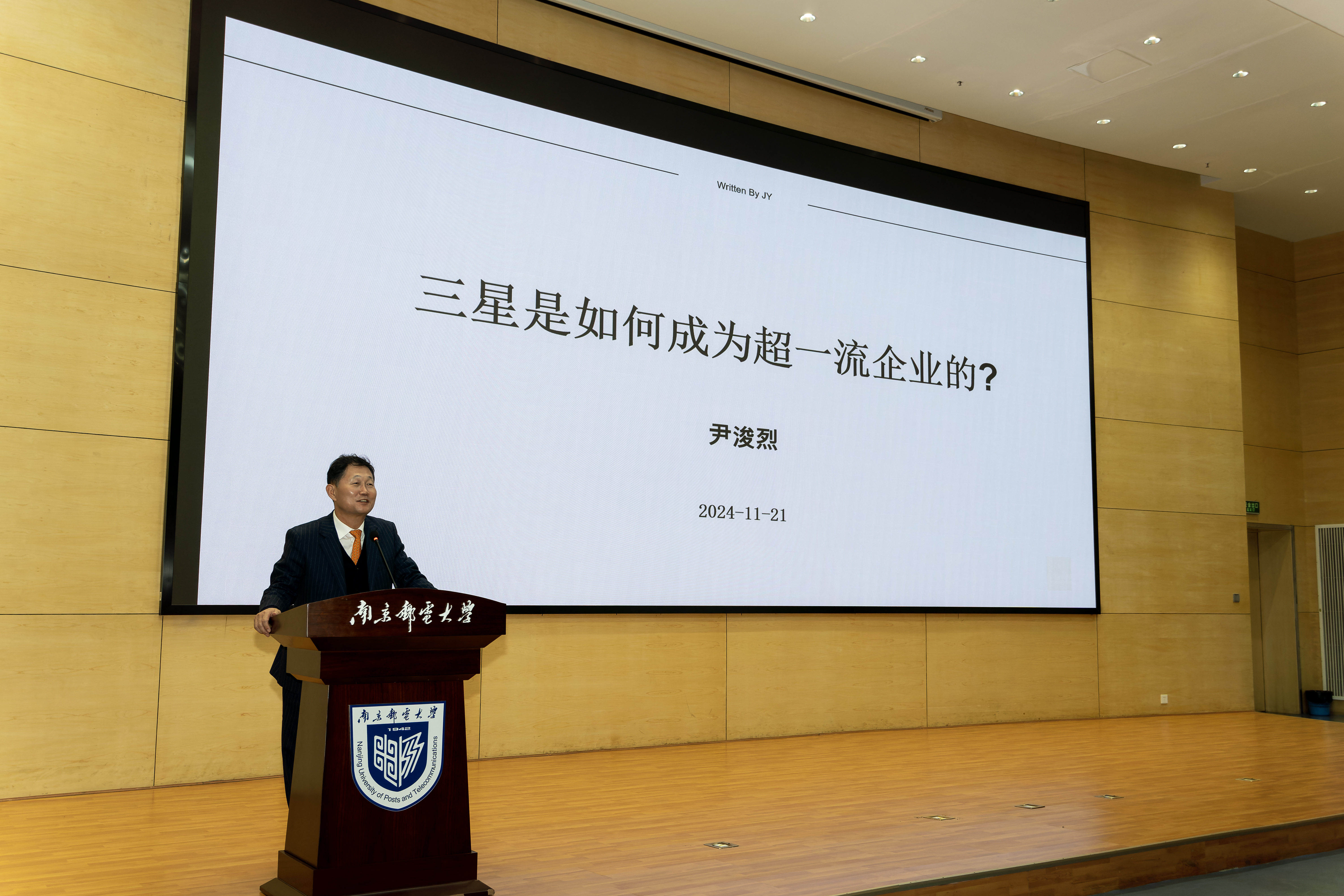 11月21日下午,由教务处主办、91网站 承办的91网站 “紫金大讲堂”--企业家讲座第一百四十八次活动在仙林校区图书馆运满满报告厅举行。韩国莱斯康电子株式会社董事长尹浚烈应邀为同学们做了题为“三星是如何成为超一流企业的”讲座。讲座由91网站 宋春元副院长主持。