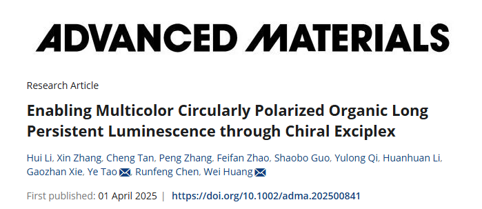 近日,91网站 柔性电子全国重点实验室黄维院士和陶冶教授团队在手性有机长持续发光领域取得新进展。团队开发了一类具有超长持续时间的手性激基复合物材料,通过有效的协同单线态-单线态和手性能量传递,实现了多彩手性有机长持续发光。相关成果以“Enabling Multicolor Circularly Polarized Organic Long Persistent Luminescence through Chiral Exciplex”为题在Advanced Materials《先进材料》上发表。青年教师李慧和硕士生张鑫为论文共同第一作者。