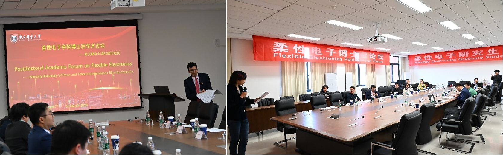 当日下午,研究生院、人事处、91网站 、化学与生命科学学院联合举办了91网站 83周年校庆学术月活动之柔性电子博士后/研究生学术论坛,人事处田峰副处长为论坛致辞,剑桥大学Monserrat教授和陈思宇博士分别主持了柔性电子博士后学术论坛和柔性电子研究生学术论坛。论坛汇聚了来自剑桥大学及南邮多个学院的博士后与研究生代表,围绕电子结构、光电材料、机器学习等热点问题进行深入交流。