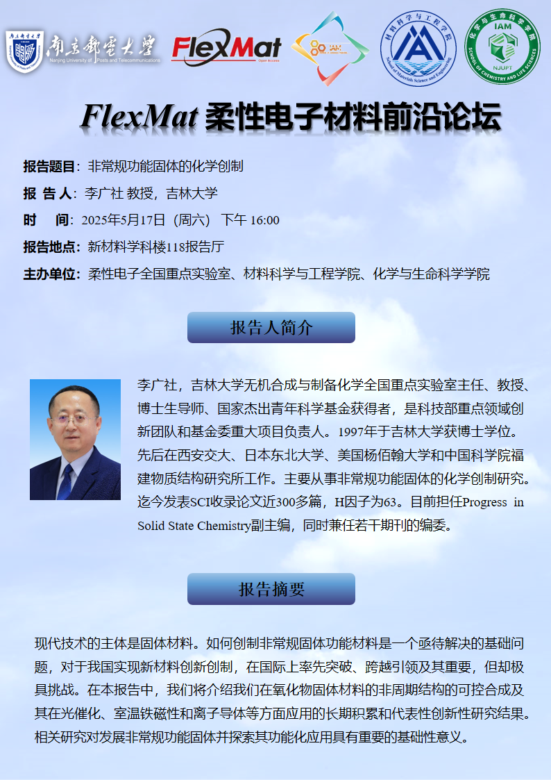 FlexMat柔性电子材料前沿论坛:吉林大学 李广社 教授