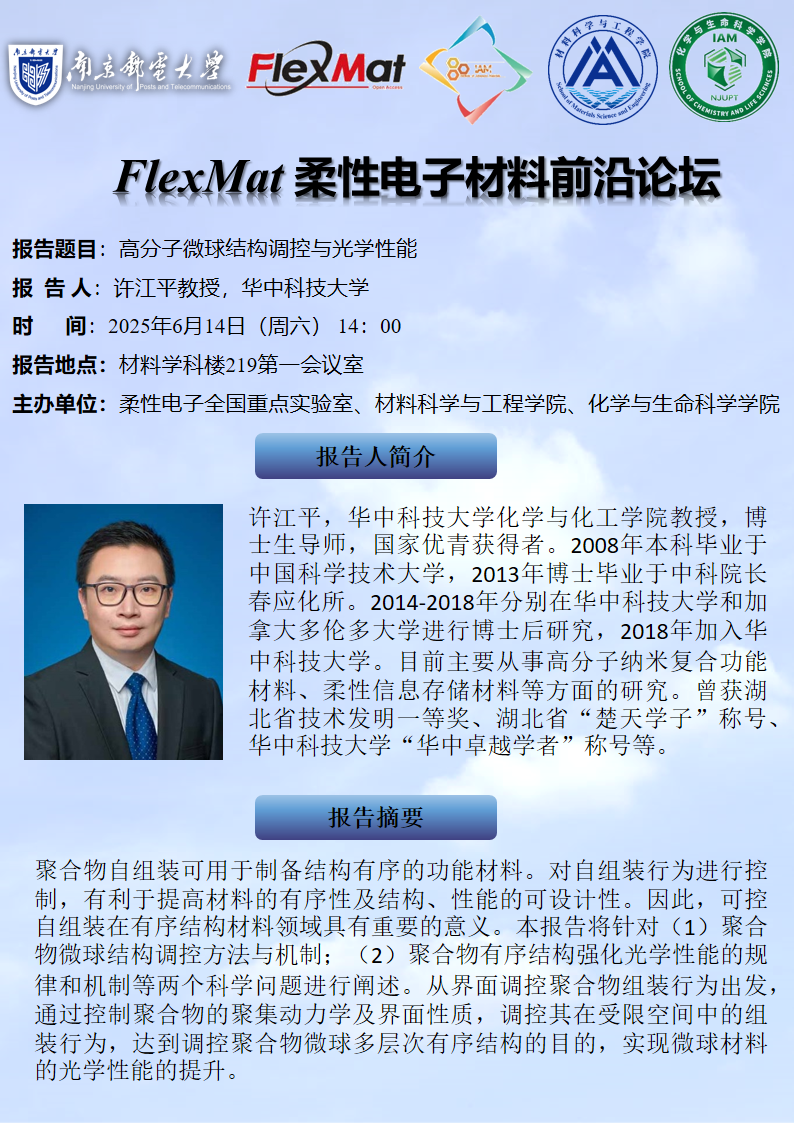 FlexMat柔性电子材料前沿论坛:华中科技大学 许江平 教授