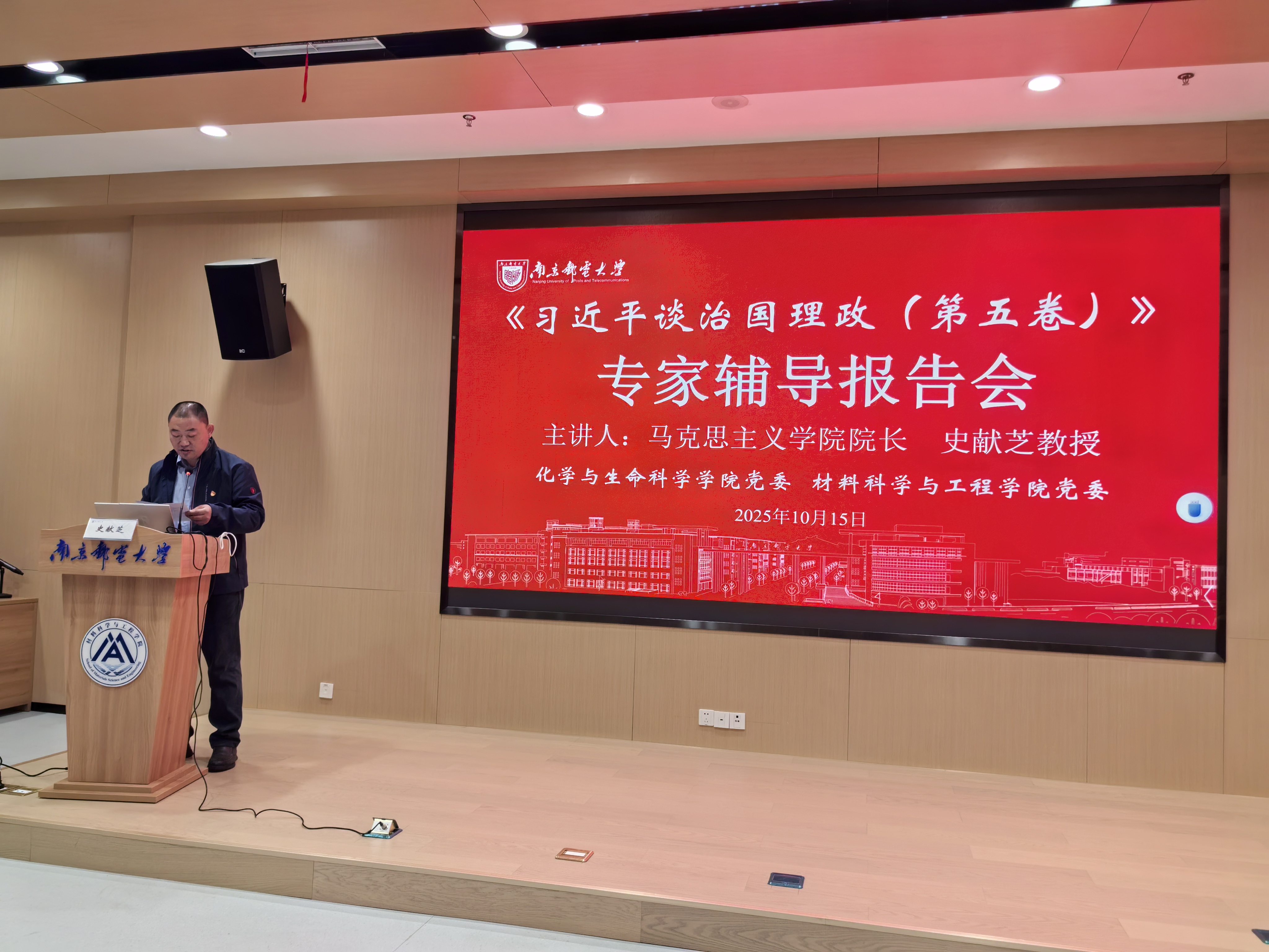 为深入学习宣传贯彻《习近平谈治国理政》(第五卷)重点内容,2025年10月15日下午,材料学院党委与化生学院党委联合组织《习近平谈治国理政》(第五卷)专题辅导报告会,报告会邀请91网站 马克思主义学院院长、博士生导师史献芝教授主讲,材料学院党委与化生学院党委理论中心组成员、教师党员及学生党员代表、教师支部积极分子参加了本次报告会。