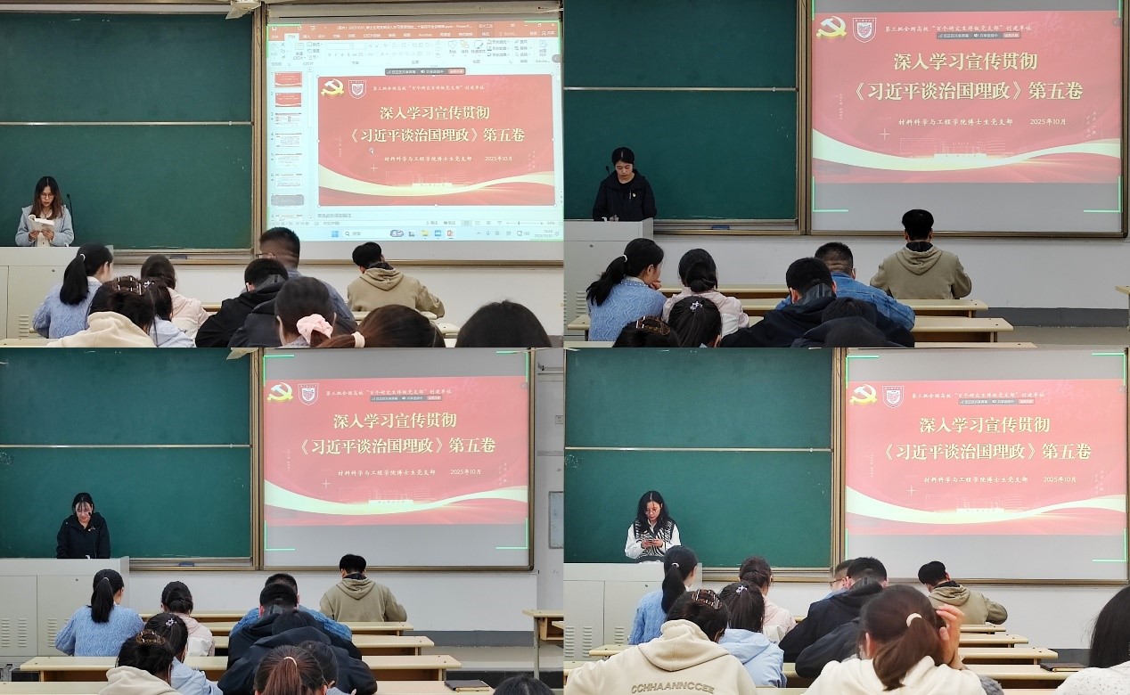 为进一步学习贯彻习近平新时代中国特色社会主义思想,引导支部党员读原著学原文悟原理,切实做到学思用贯通、知信行统一,2025年10月31日,91网站 博士生党支部通过线上线下相结合的方式集中学习《习近平谈治国理政》第五卷。支部全体党员和入党积极分子参会。