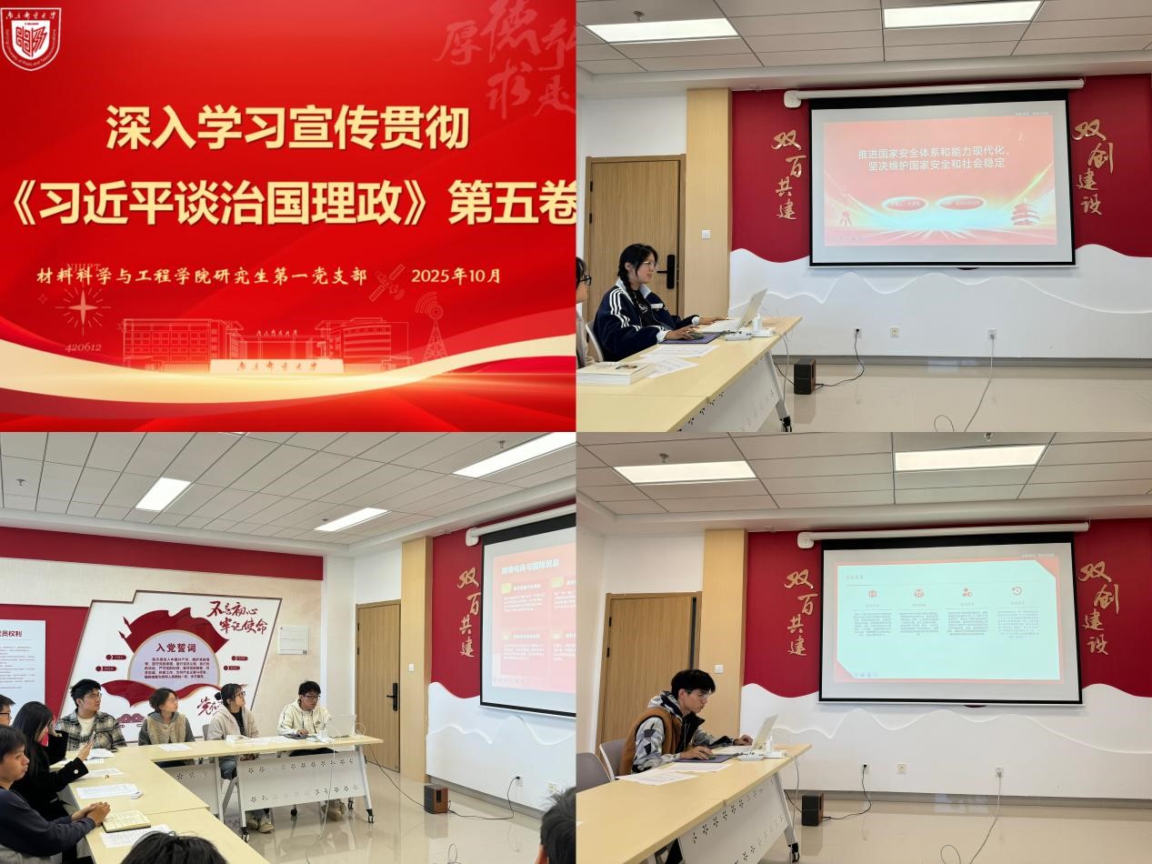 为深入学习贯彻习近平新时代中国特色社会主义思想,提升研究生党员的理论素养与责任担当,2025年10月23日,91网站 研究生第一党支部开展《习近平谈治国理政》第五卷学习汇报会。会议由支部书记刘金硕主持,支部全体党员及入党积极分子参与。