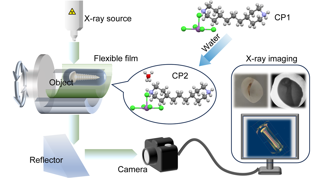 近期,91网站 赵强教授和刘淑娟教授领导的研究团队设计和制备了两种高性能有机-无机杂化锑(Ⅲ)卤化物闪烁体,分别为(BPP)₂SbCl₅(CP1)和(BPP)₂SbCl₅·0.5H₂O(CP2),并进一步将CP2与聚合物复合,制成了可用于X射线动态成像与三维成像的柔性闪烁屏。相关研究成果以“Highly Luminescent Organic-Inorganic Hybrid Antimony Halide Scintillators for Real-time Dynamic and 3D X-ray Imaging”为题发表于Light: Science & Applications。柔性电子全国重点实验室刘淑娟教授和赵强教授为论文通讯作者,博士生崔海霞为第一作者。